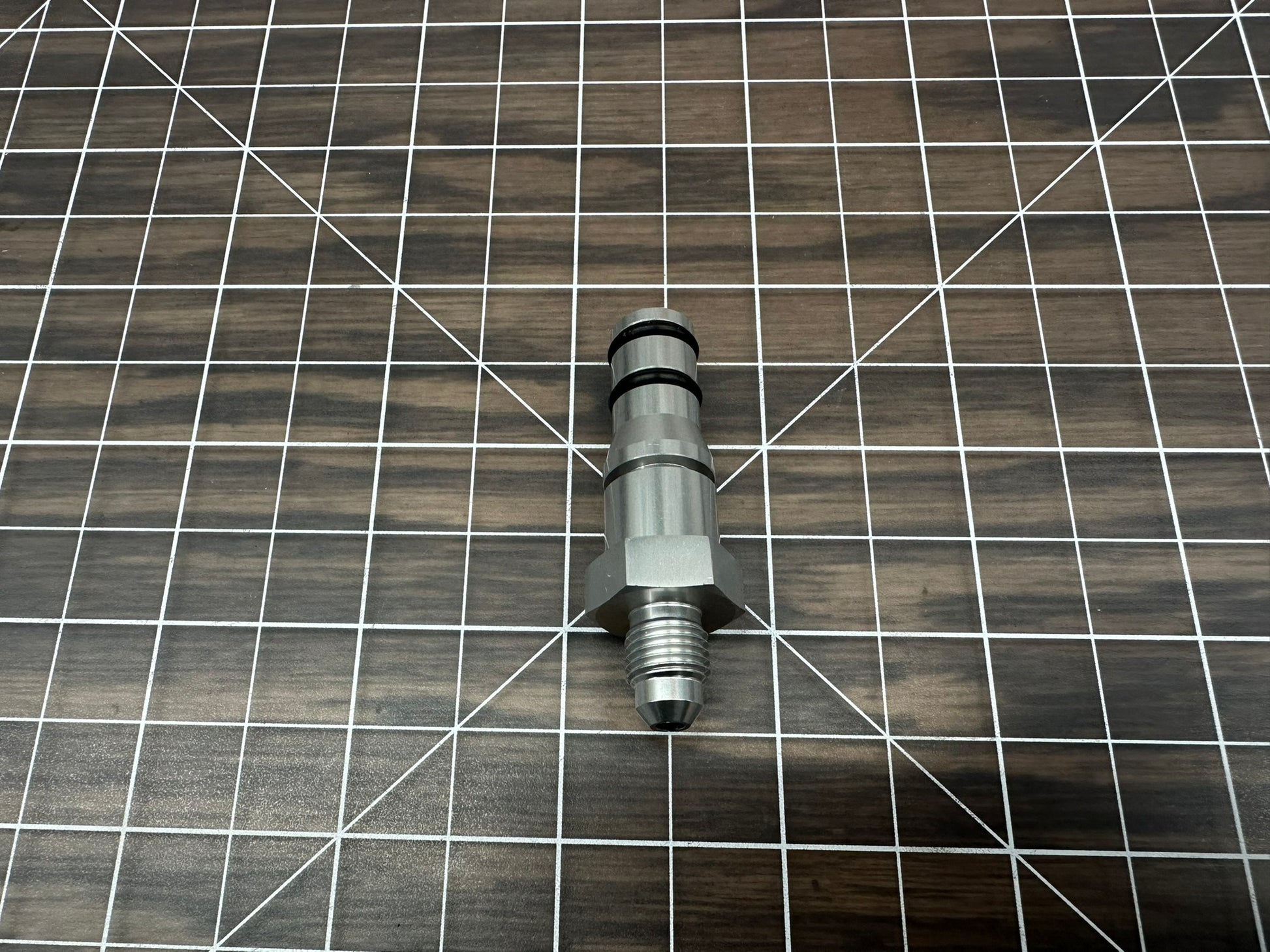 The LantzFab TR6060 slave cylinder fitting converts the non standard quick connect fitting used in Corvettes and Camaros to a common -3AN hydraulic fitting.